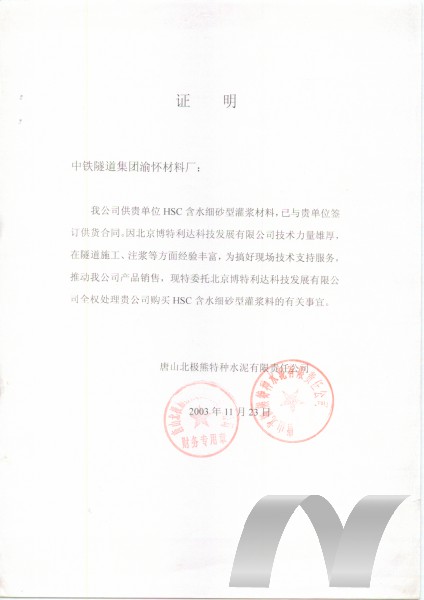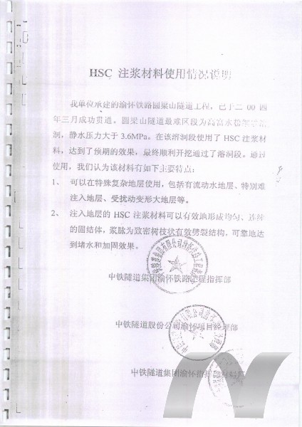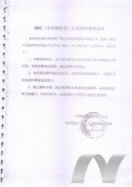 HSC含水細(xì)砂型注漿材料具有突出的可注性及一定的抗水性,適當(dāng)?shù)牟僮鲿r(shí)間及硬化時(shí)間。